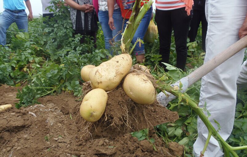 8;噴施地下狂長(cháng)第二遍10-15天后,再按第二遍的用量噴施一遍,一般增產(chǎn)30-40%以上,而且土豆色澤金黃光亮,品質(zhì)優(yōu)良特耐儲存,上品價(jià)值極高。