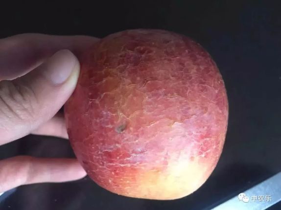 ③樹(shù)冠郁蔽,通風(fēng)透光不良,果實(shí)陰面水分不能很快散發(fā),終導致裂紋處傷口木栓化,輕者果點(diǎn)變黑,嚴重時(shí)果面裂成條狀傷口。據觀(guān)察,果實(shí)陰面、兩果鄰近的陰面區域,或緊貼葉片的果面易裂紋。④雨水流入果袋,尤其在陰雨連綿天氣,由于袋內濕度大,持續時(shí)間長(cháng),而導致梗裂,果面裂紋。⑤套袋果脫袋后遇雨或遭遇極度干熱天氣也易裂紋。