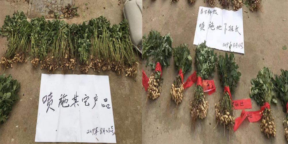 我們工作人員對花生進(jìn)行了對比,您看得出來(lái)區別嗎?噴施過(guò)三遍的地下狂長(cháng)花生葉片濃綠肥厚,根系發(fā)達,座果率高,雙仁果多,抗病抗旱能力強。