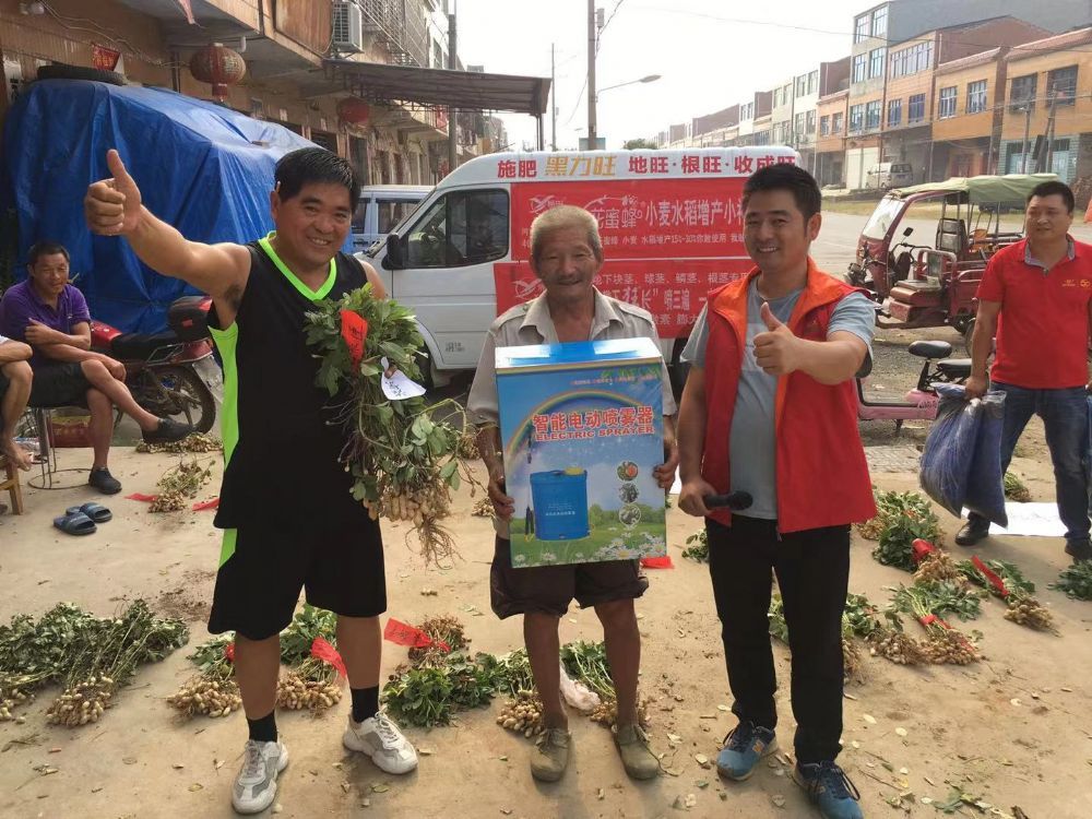 工作人員正在為我們噴施地下狂長(cháng)花生收獲好的農民頒發(fā)獎品。同時(shí)也祝賀我們易生科技地下狂長(cháng)“花生PK大賽”在襄陽(yáng)朱集鎮圓滿(mǎn)結束。